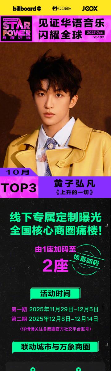 就在最近,Billboard公告牌與QQ音樂、JOOX聯合推出的「Star Power月度評選」第二期結果揭曉,黃子弘凡_Lars憑藉單曲《上升的一切》榮獲10月評選TOP3。這個消息在國內音樂圈引發熱議,成功解鎖了上海萬象城、無錫濱湖萬象匯兩座核心商圈的「痛樓」展示,從11月29日至12月14日吸引大量樂迷打卡。但對海外用戶而言,這樣的音樂盛事往往只能望洋興嘆。