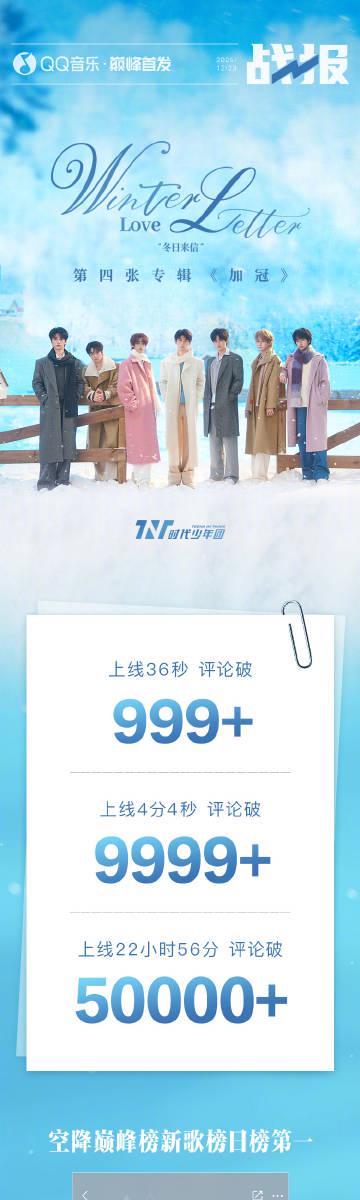 時代少年團《冬日來信》的爆火數據,恰恰放大了這種「被阻隔」的焦慮。上線4分4秒評論破9999+,22小時破50000+,橫掃QQ音樂巔峰榜各大榜單第一……這些滾燙的戰報,在社交媒體上瘋狂刷屏,營造出全民狂歡的氛圍。對於海外遊子而言,這種狂歡卻是「靜音」的。你無法在第一時間感受那首被譽為「冬日暖陽」的旋律,無法在歌曲下方留下你的「回信」,更無法在朋友圈分享你的感動。這種缺席,不僅是娛樂生活的缺失,更是在情感聯結上與國內同齡人、與文化根源產生的一絲裂痕。
